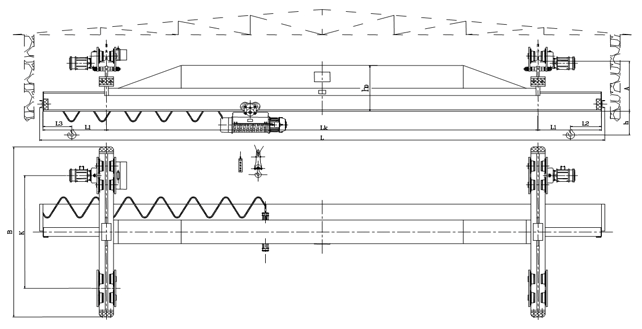 本產(chǎn)品為一般用途起重機(jī),多用于機(jī)械制造裝配、倉庫、山洞等場所。起重機(jī)主要由橋架(金屬結(jié)構(gòu))、電動葫蘆、運行結(jié)構(gòu)、電氣設(shè)備等四部分組成。